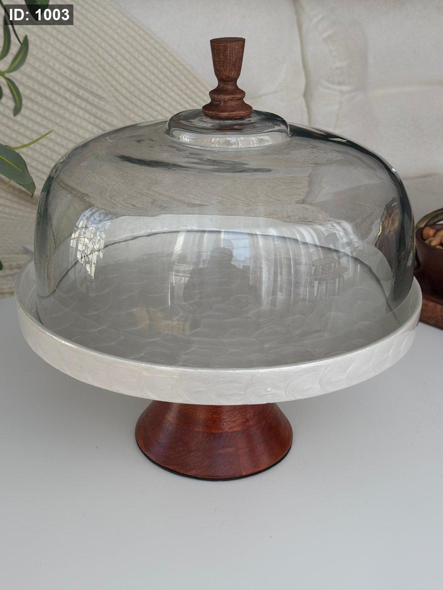 جاط كعك برجل غطا زجاج هندي (30*29سم)