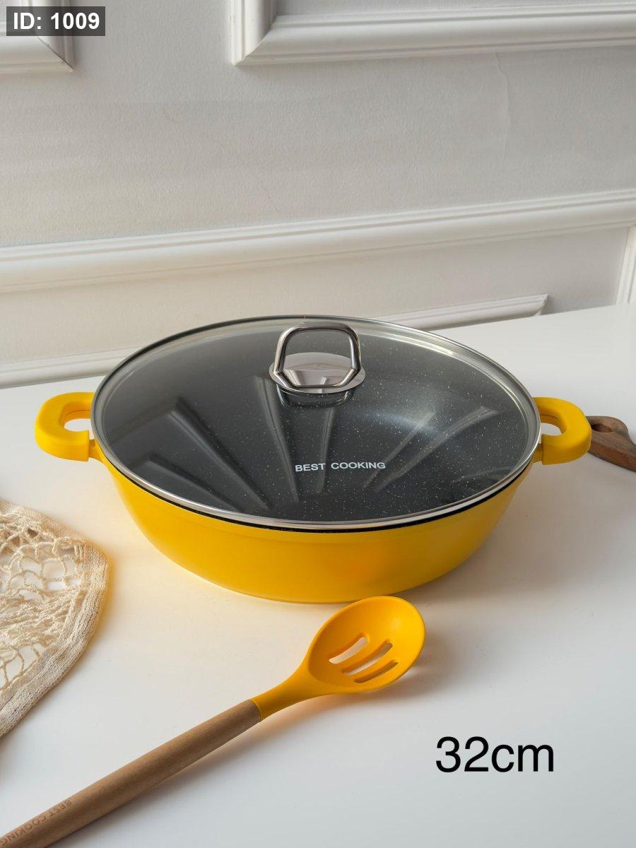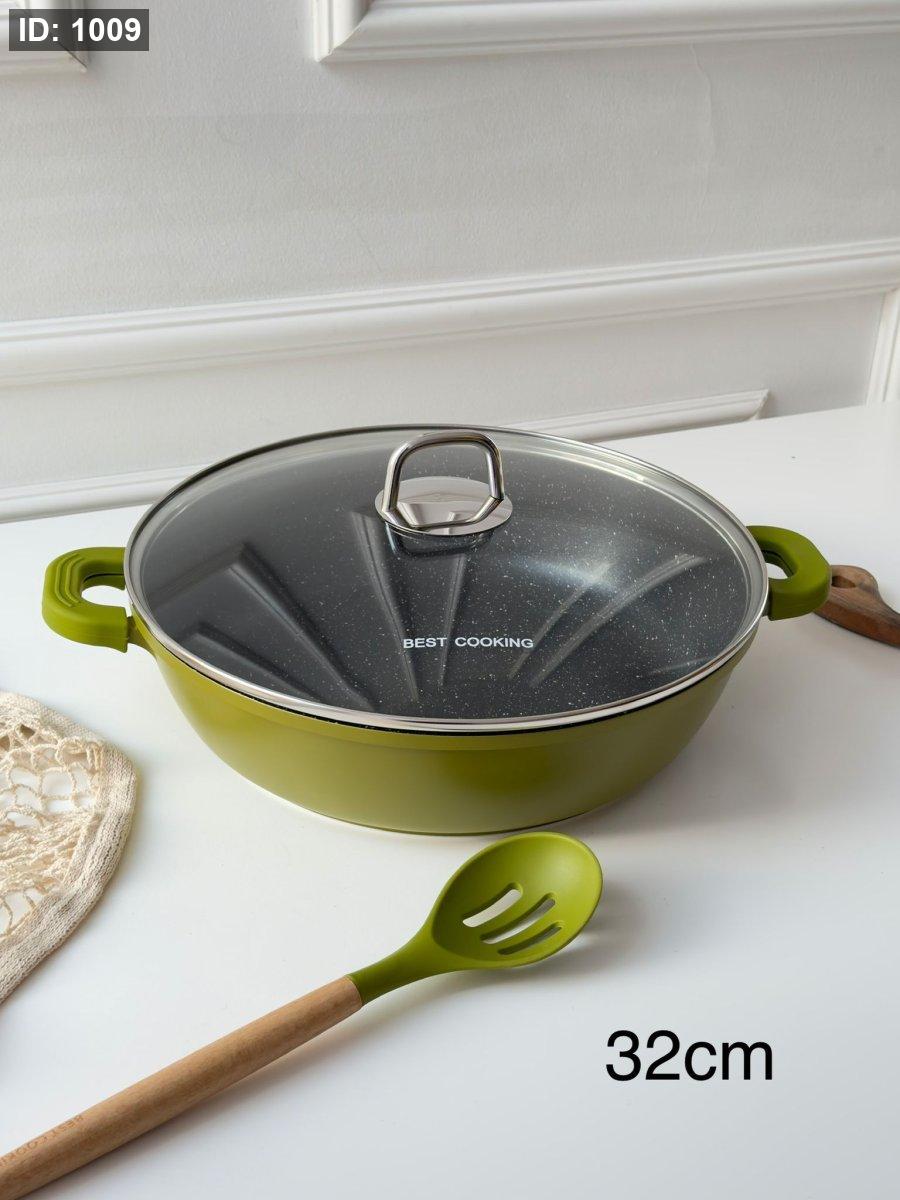 مقلى ملون جرانيت بيست + مغرفه 32سم