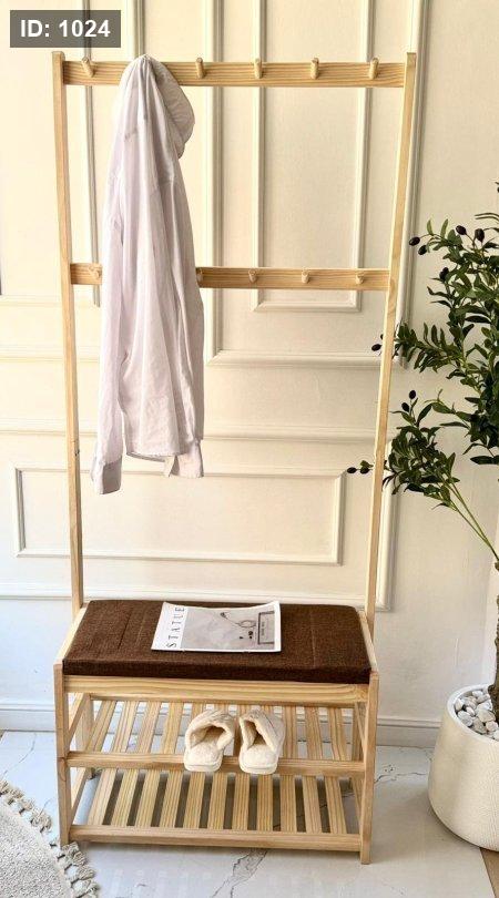 علاقه ملابس بامبو + رفوف + مقعد