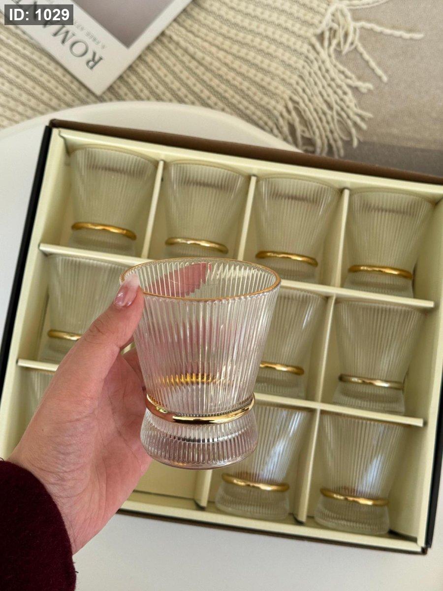 طقم كاسات عصير برجل محزز حز ذهبي