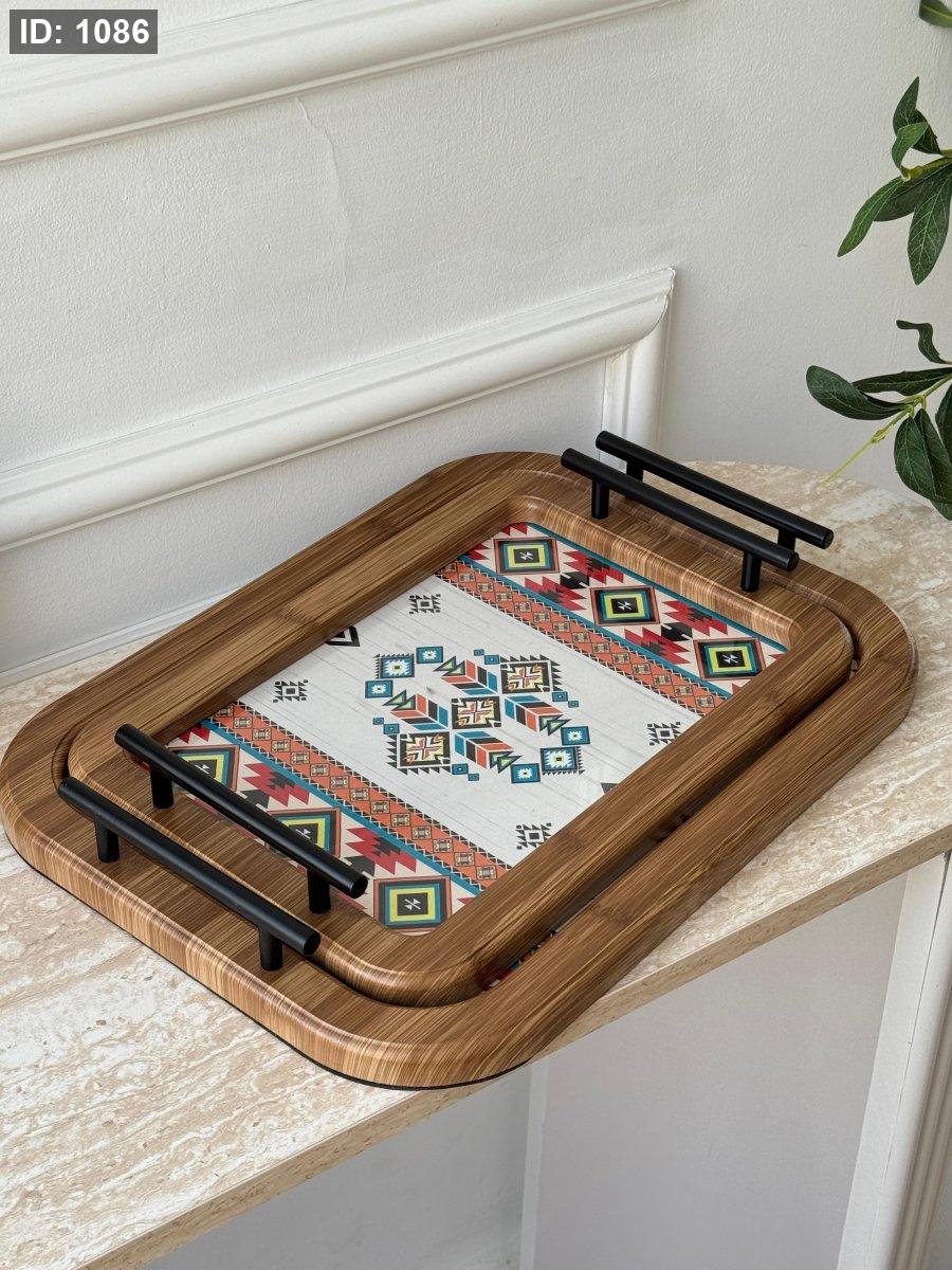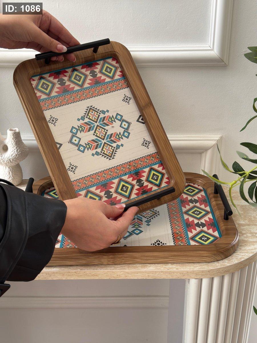 طقم صواني مستطيل مغربي وجه زجاج قطعتين(24*34+30*40سم)