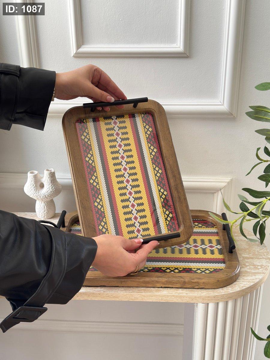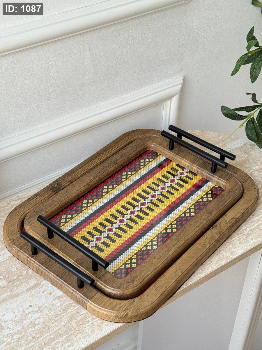 طقم صواني مستطيل مغربي وجه زجاج قطعتين(24*34+30*40سم)