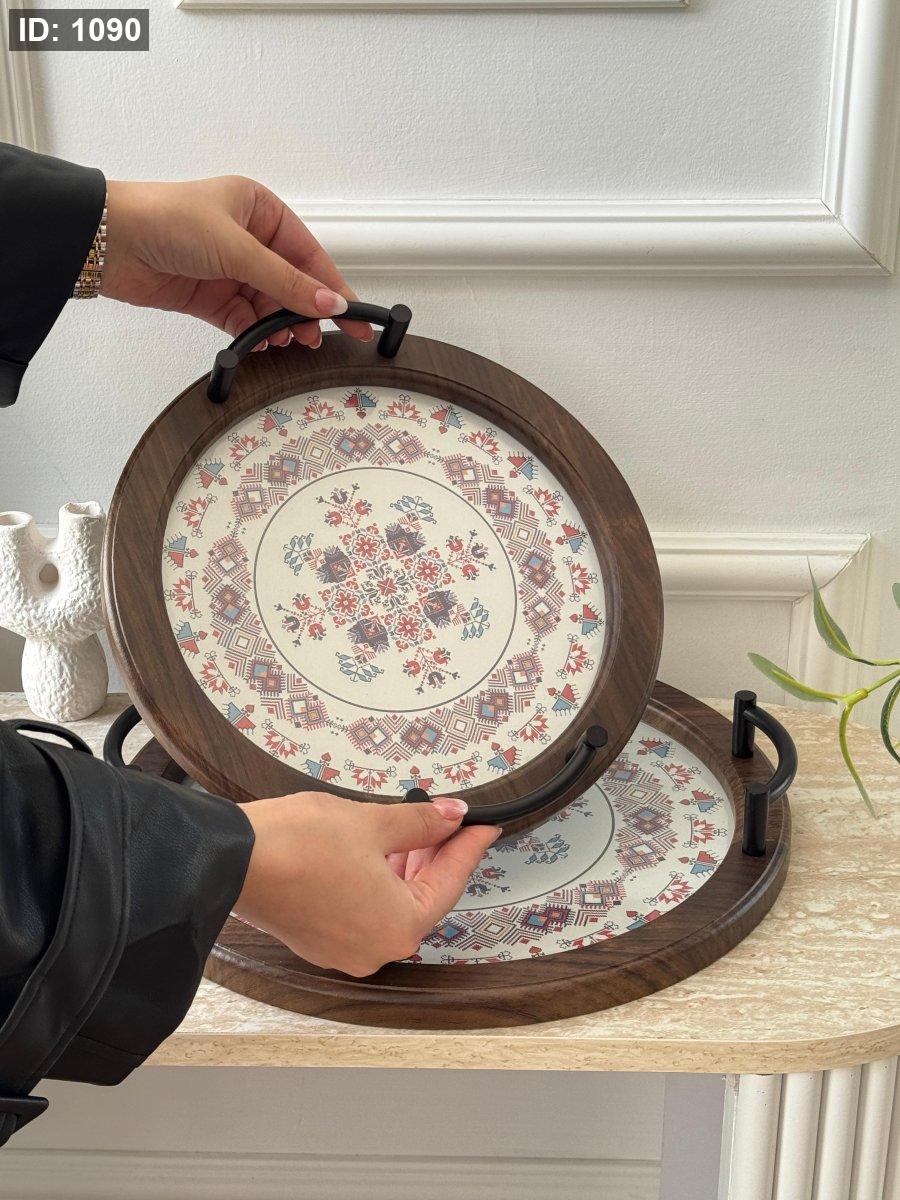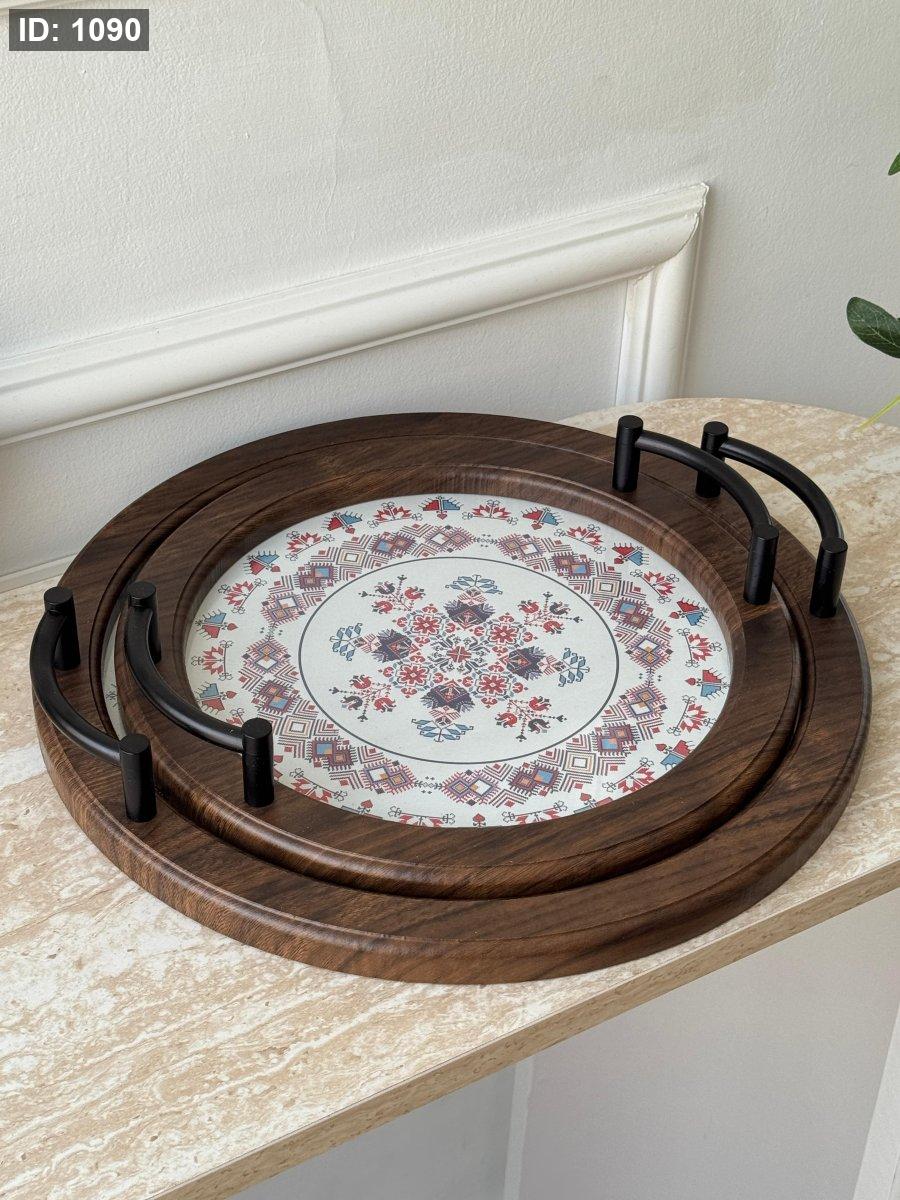 طقم صواني مدور مغربي وجه زجاج قطعتين(30+35سم)