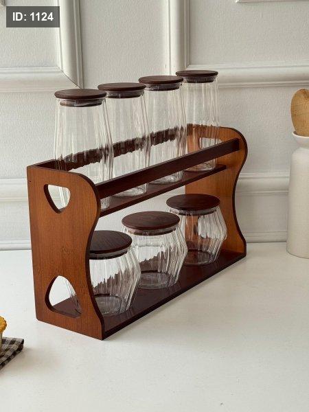 طقم سكريات 7 قطع + ستاند خشب (38*32*12سم)