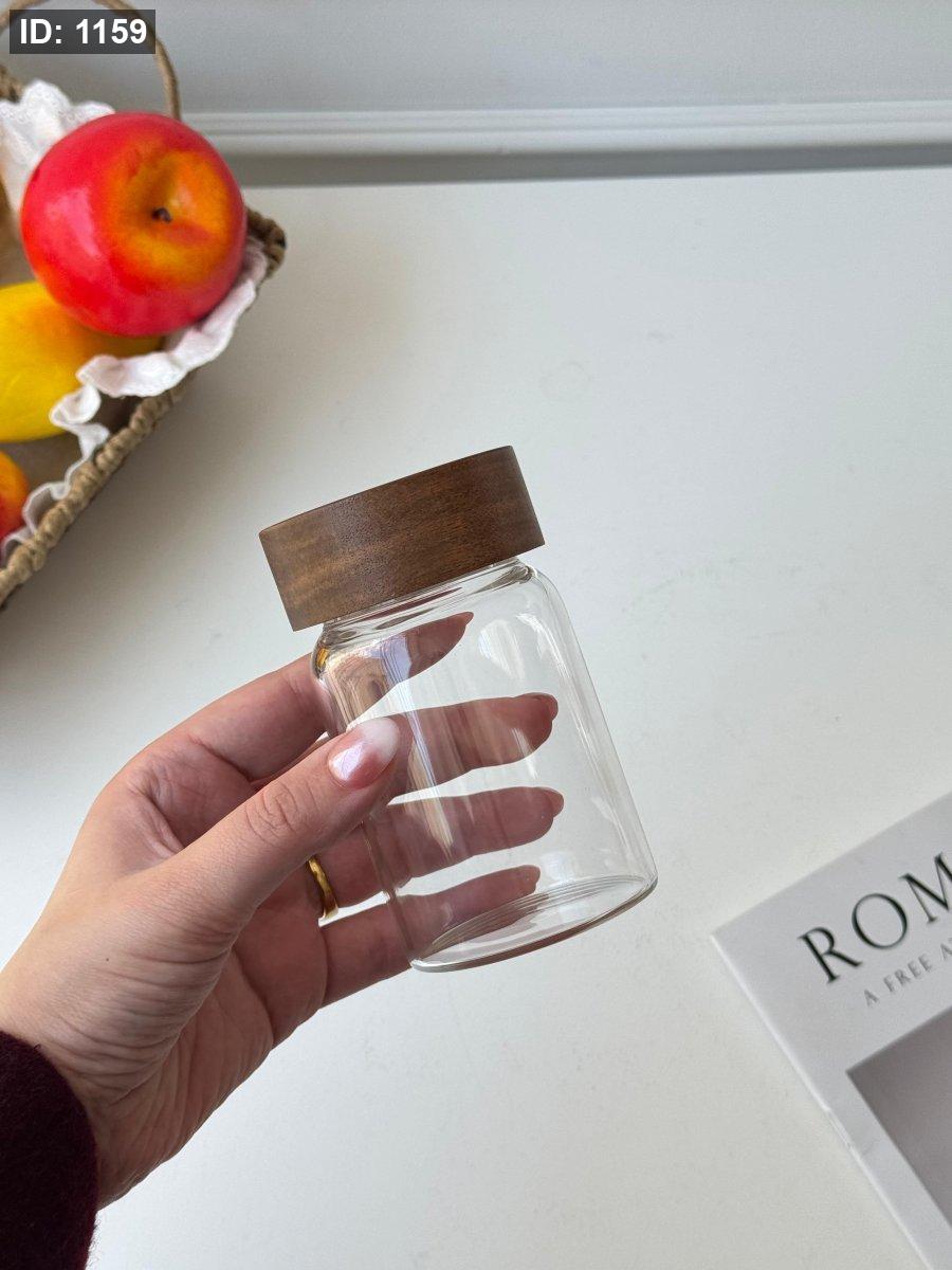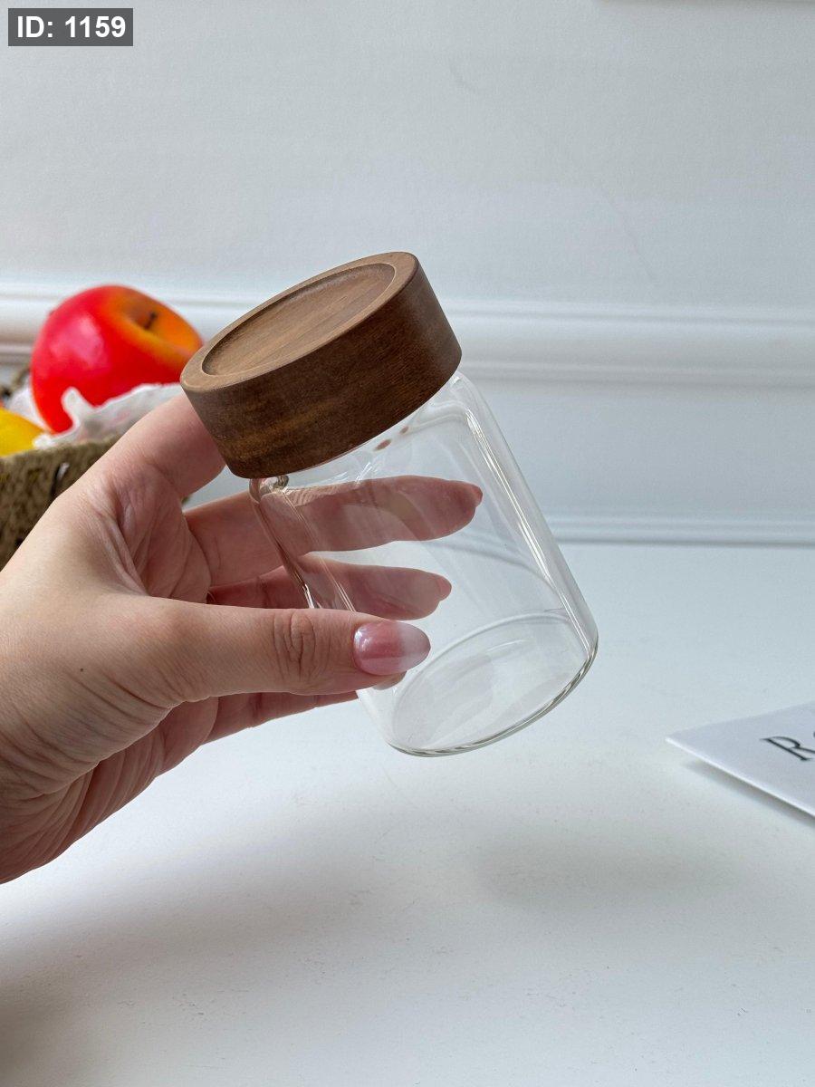 مرتبان زجاج غطا خشب لف (11*6.5سم)