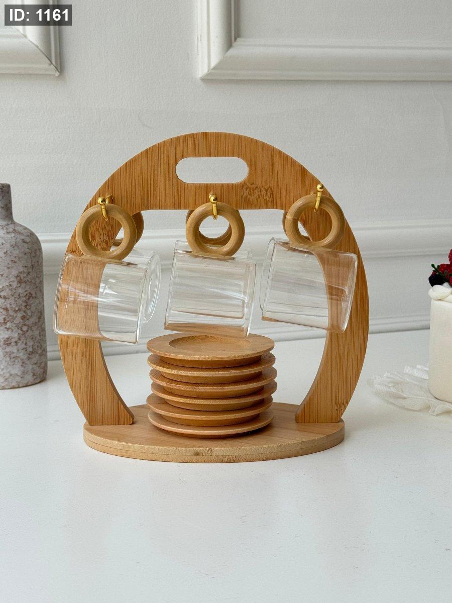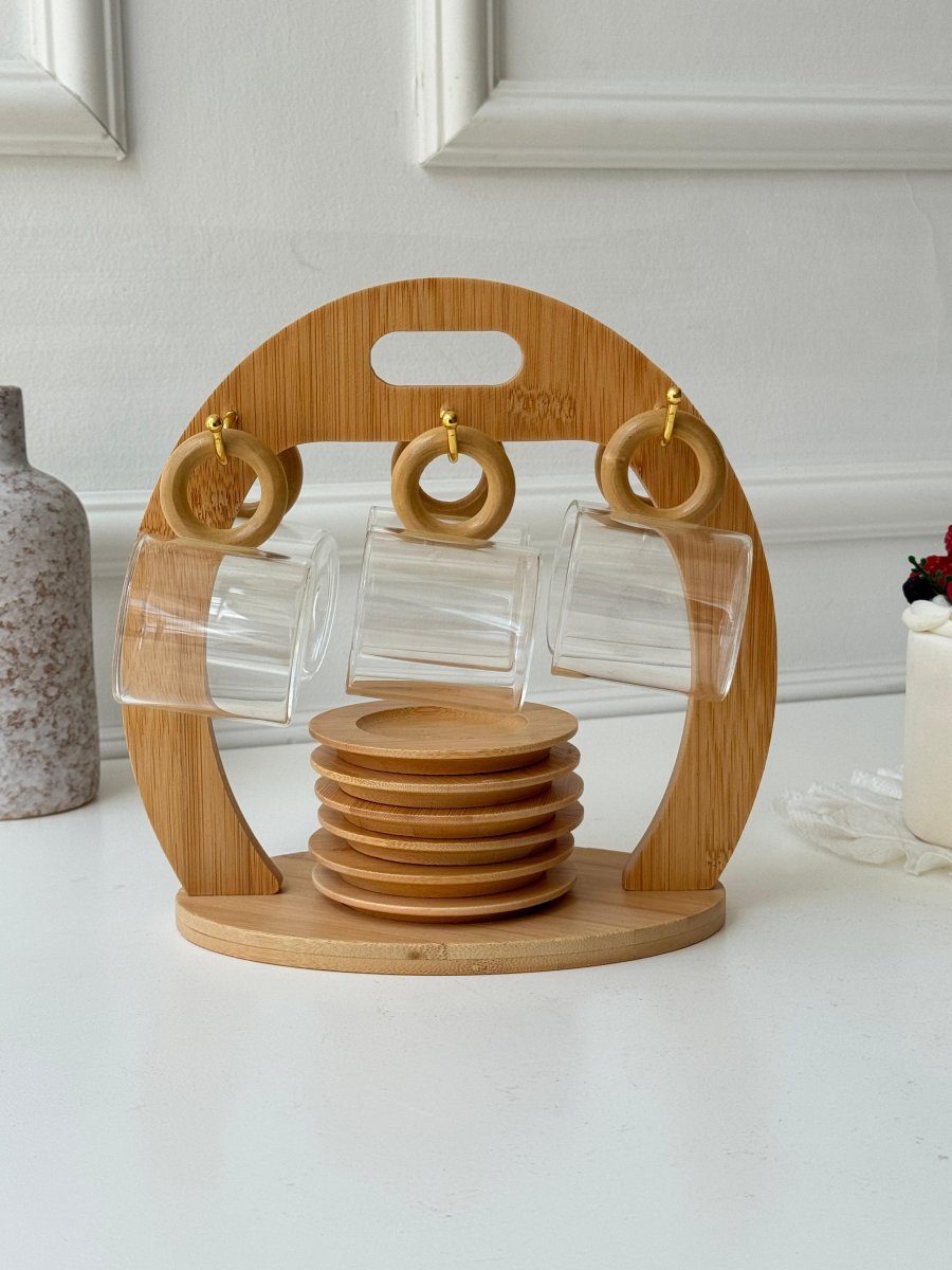 طقم 6 فناجين قهوه + 6 صحون + ستاند بامبو (23*22سم)