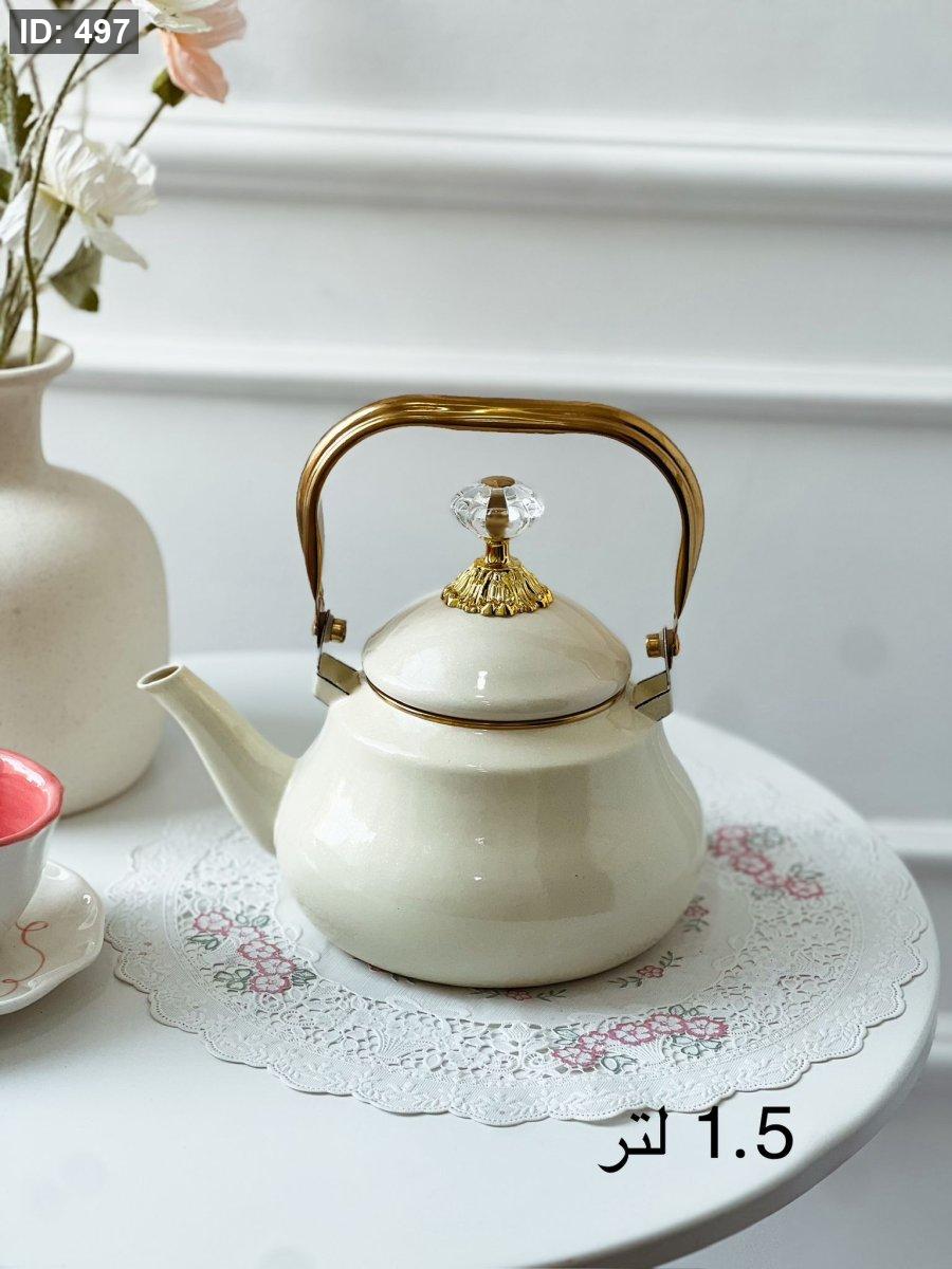 ابريق شاي ابيض يد ذهبي1.5لتر