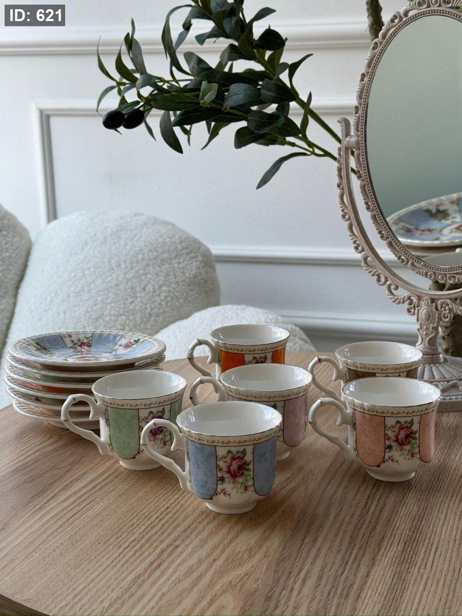 فناجين قهوه 6+6 مورد بورسلان