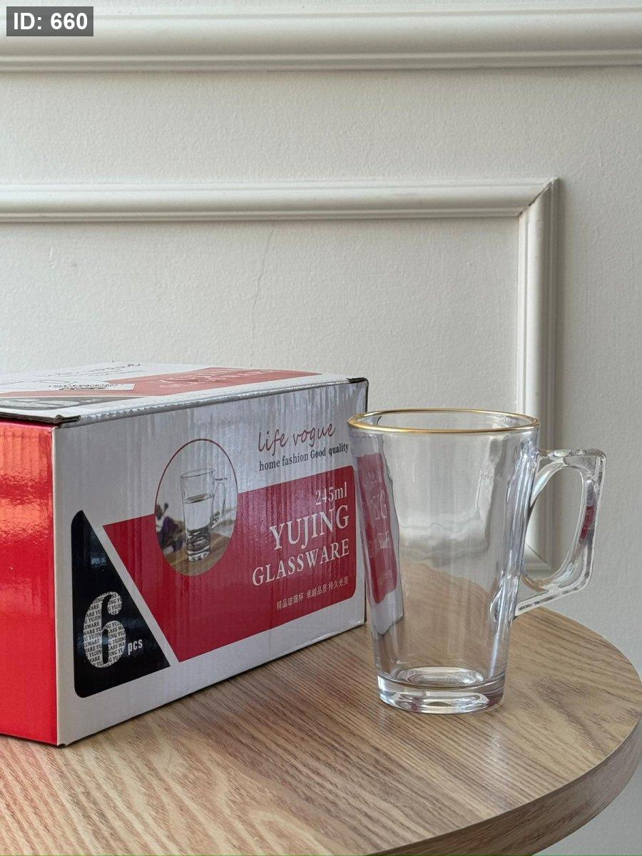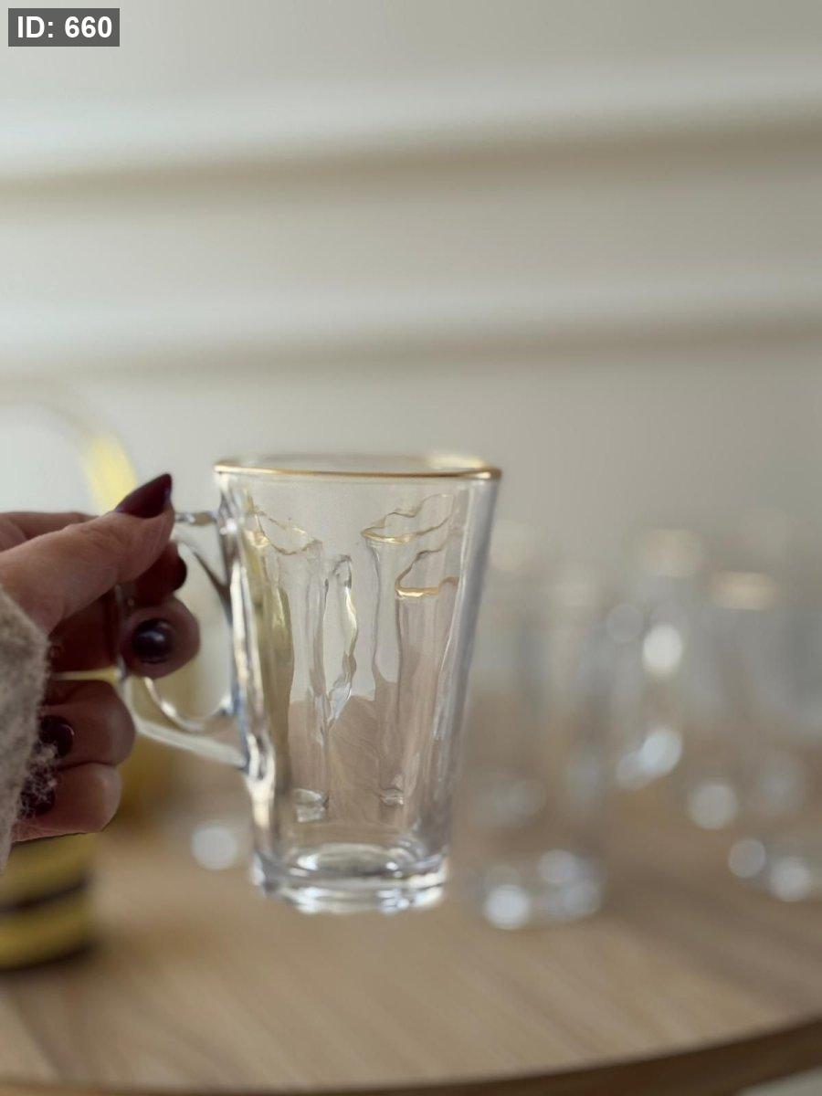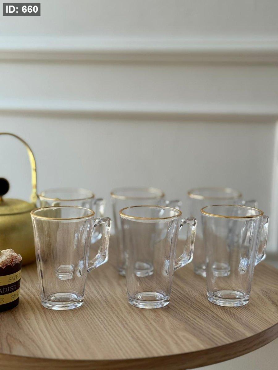 كاسات شاي شفاف حز ذهبي / 6