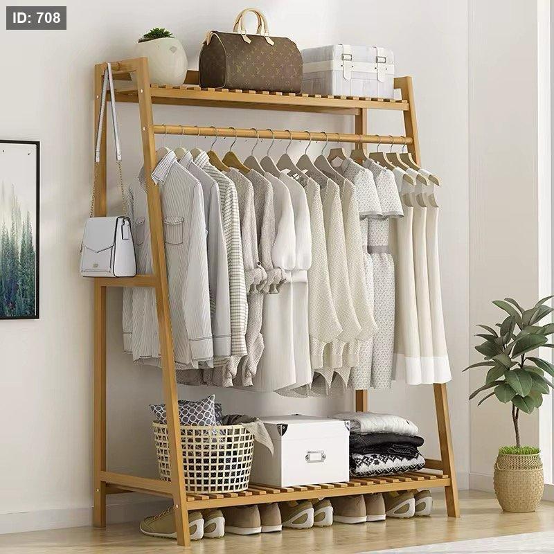 ستاند علاقه ملابس بامبو+رفوف احذيه