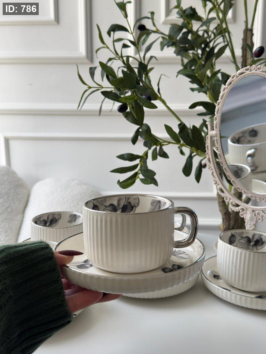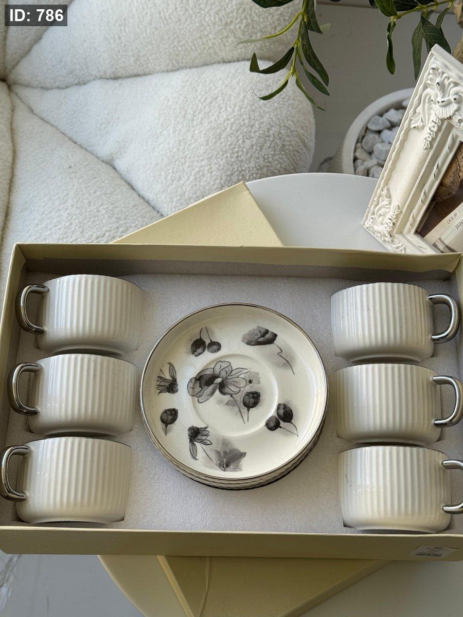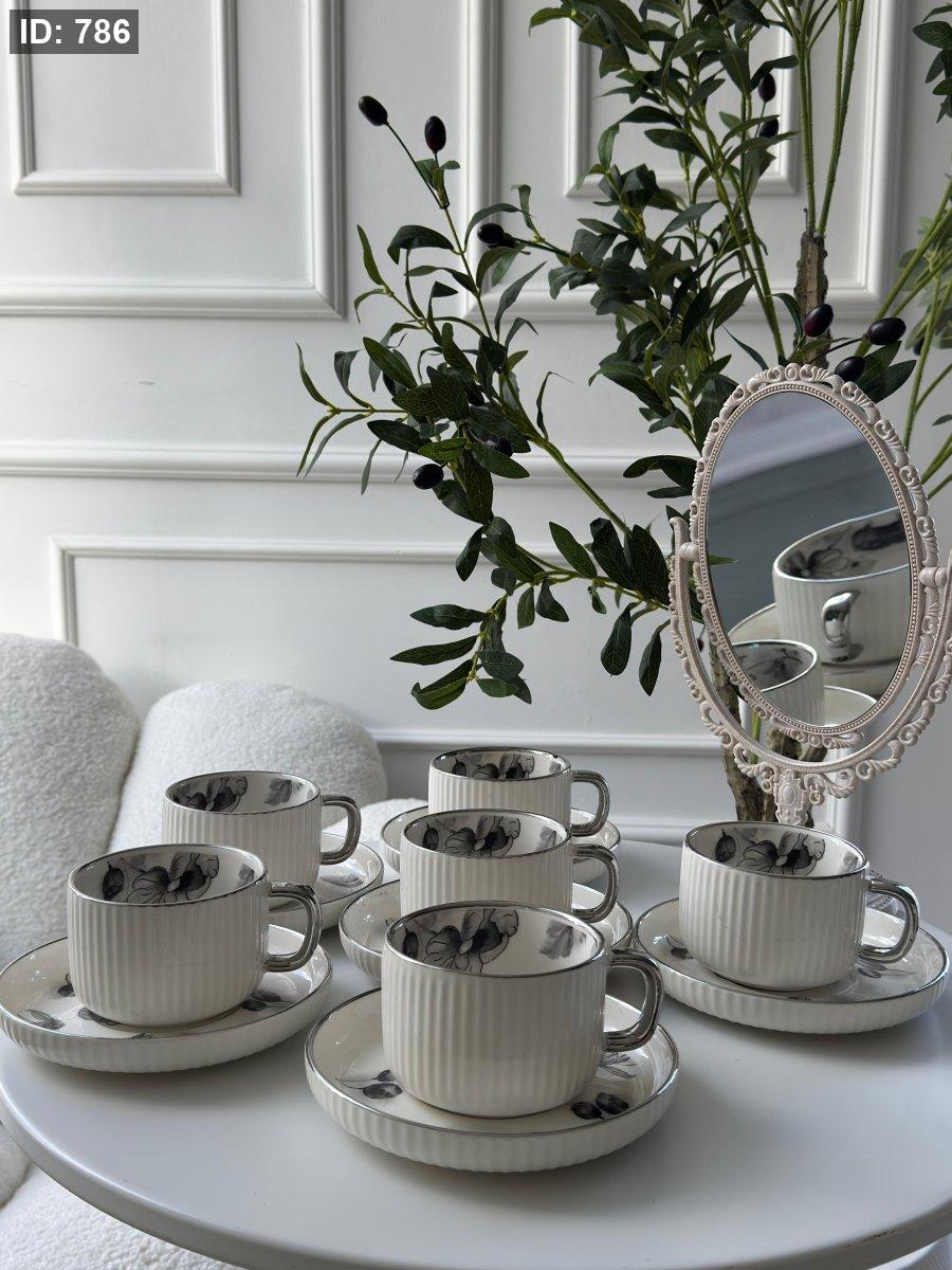 طقم فناجين محزز مورد6+6