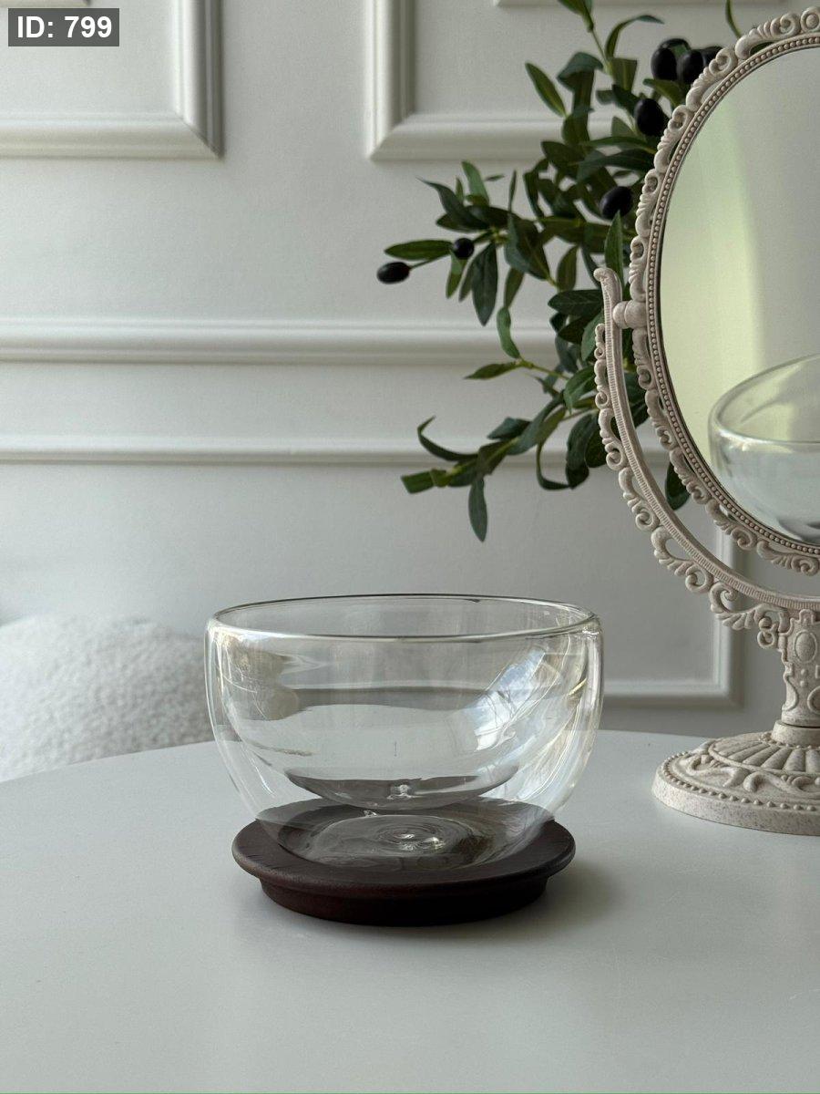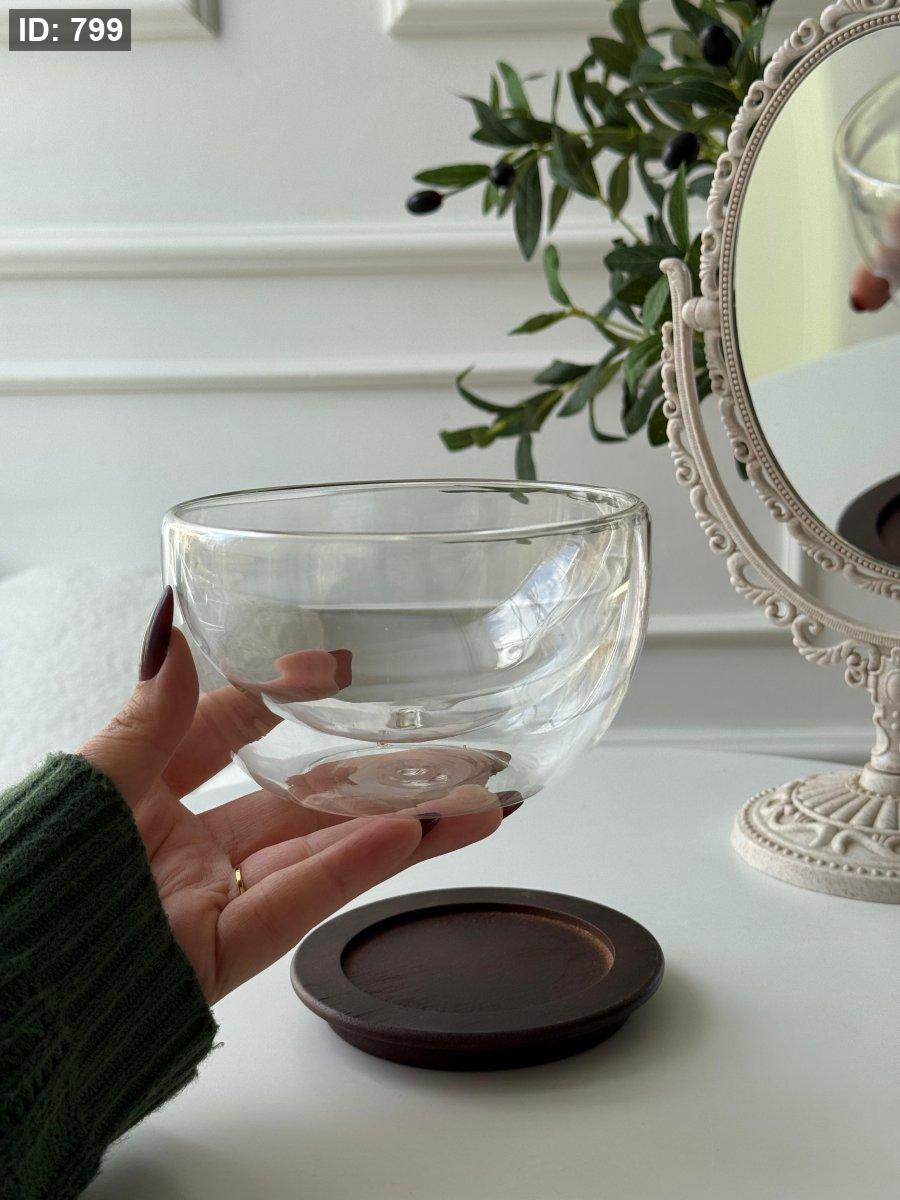 صحن مكسرات دبل جلاس + صحن خشب
