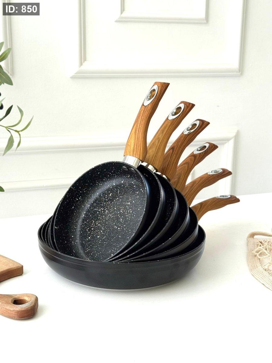 طقم قلايات جرانيت اسود مط يد خشب 6 قطع