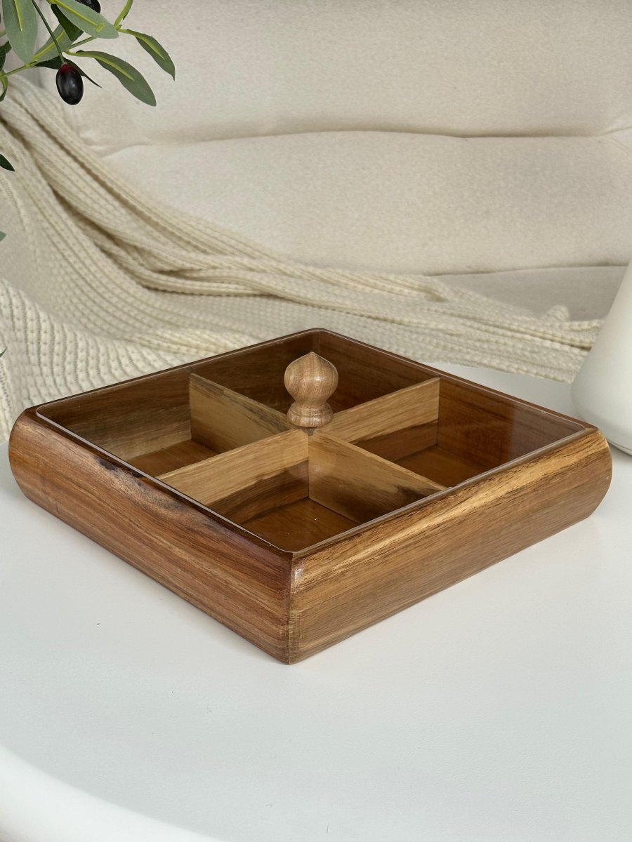 مضيفه بامبو ثقيل مقسم مربع (27سم)