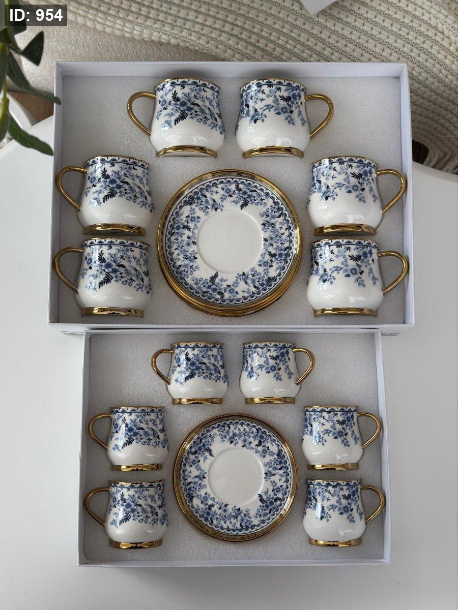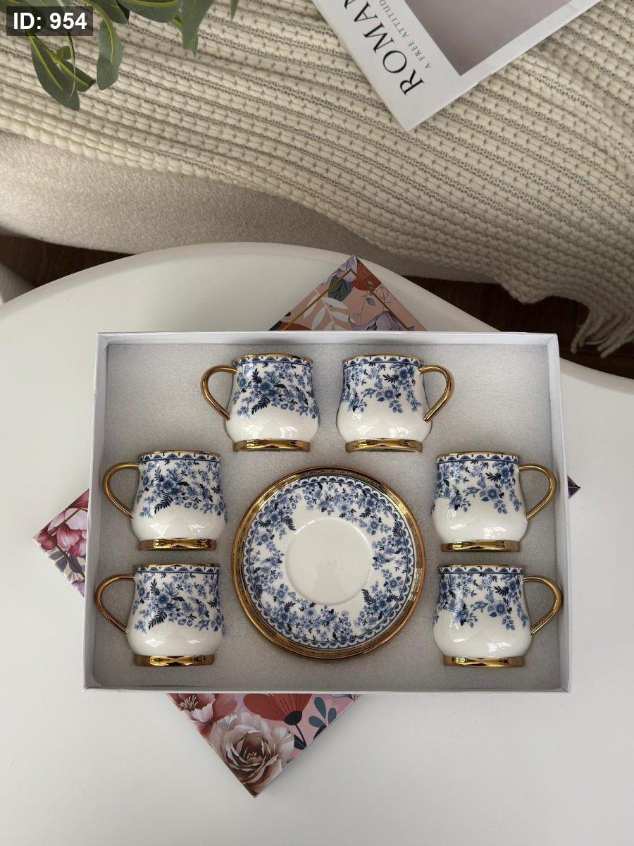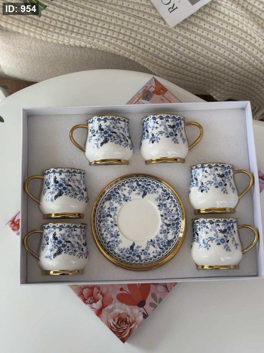 طقم فناجين مورد مذهب 6+6 العصفور الازرق