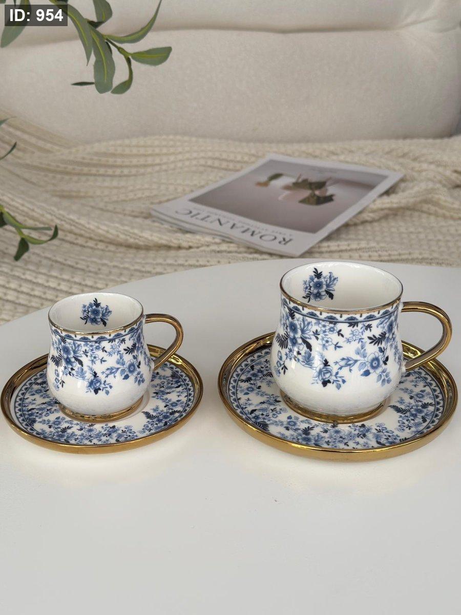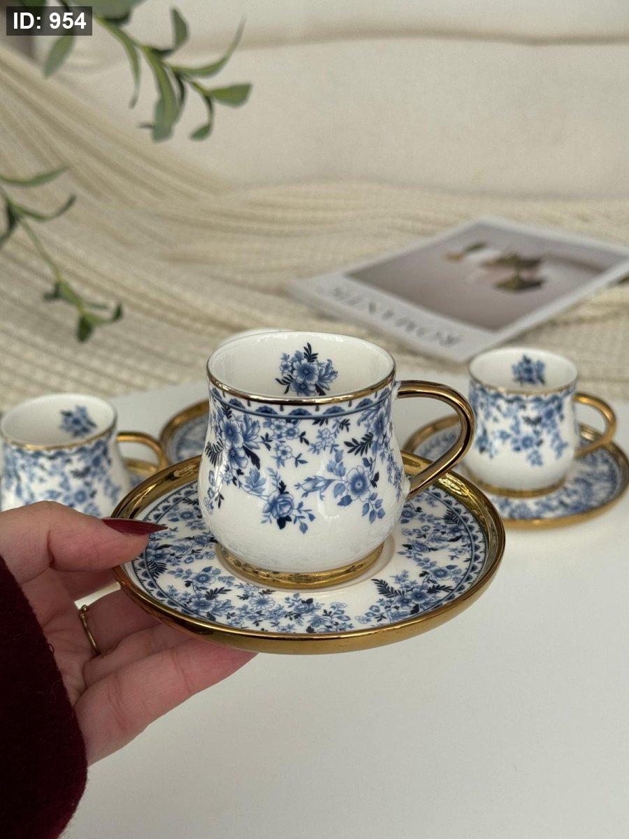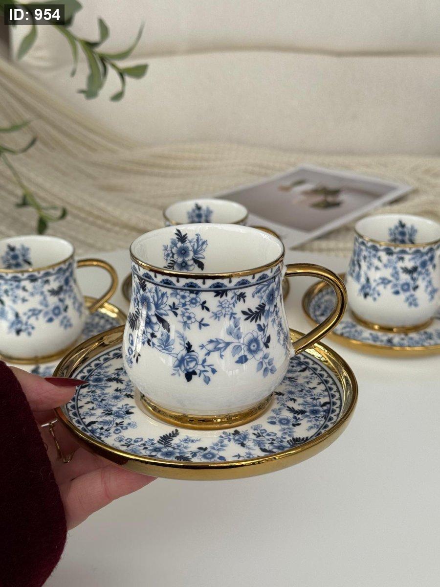 طقم فناجين مورد مذهب 6+6 العصفور الازرق
