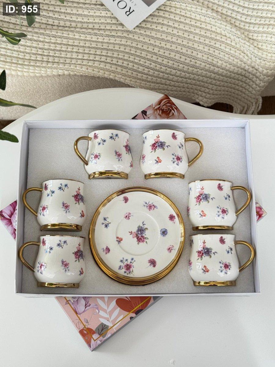 طقم فناجين مورد مذهب 6+6