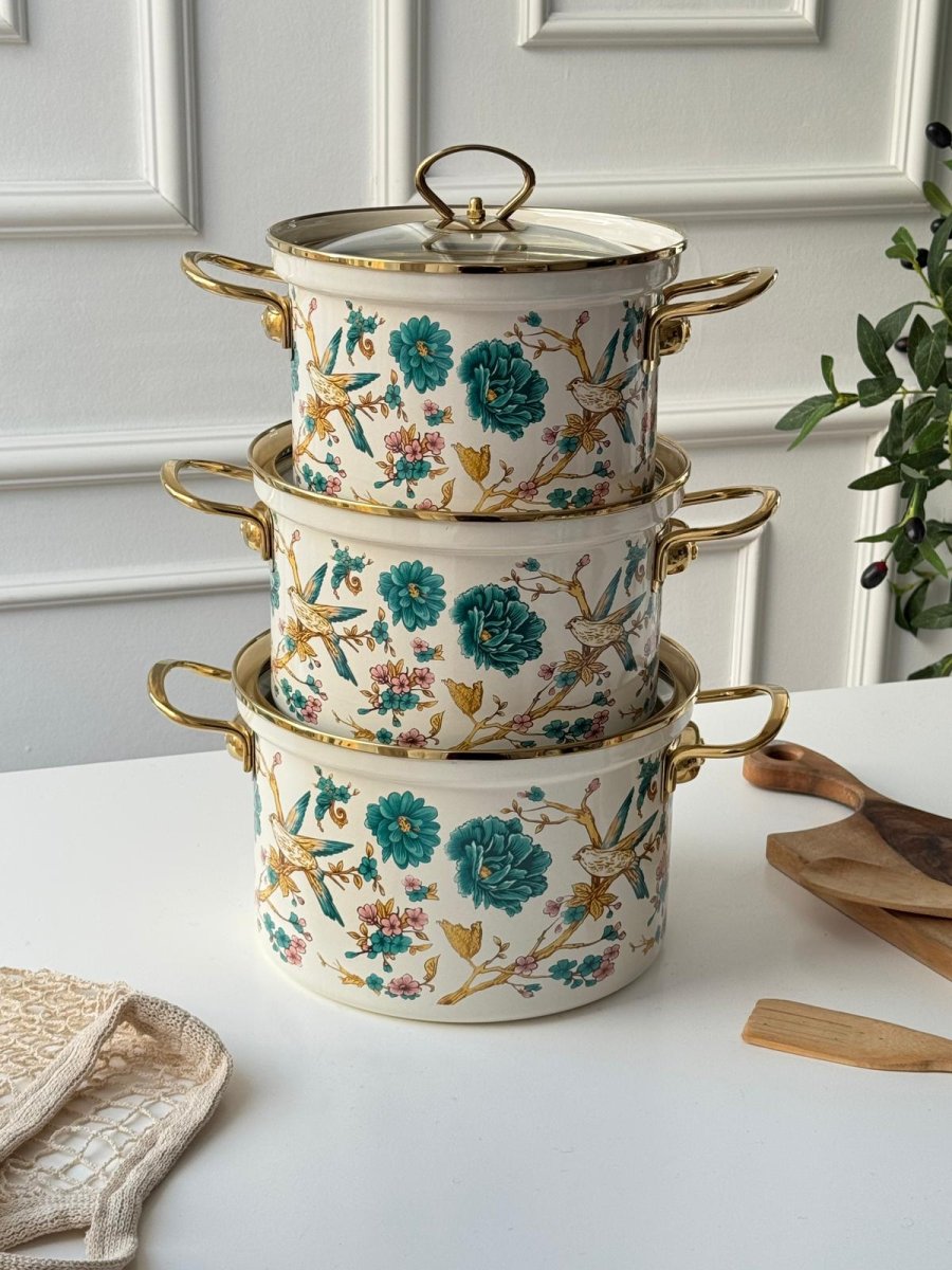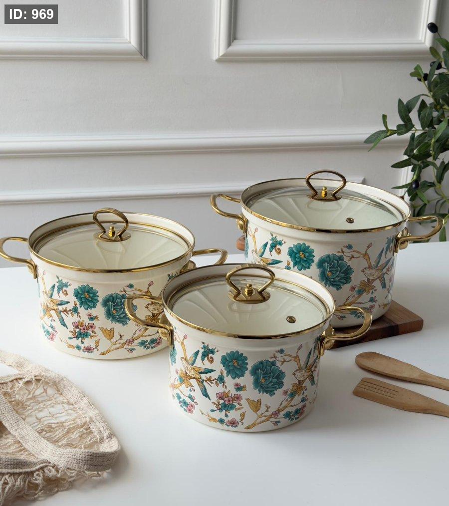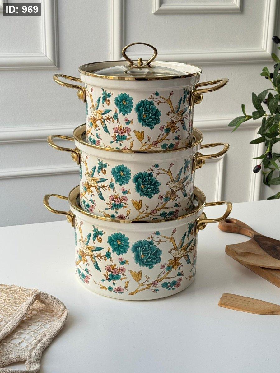 طقم طناجر توتيا مورد 3 قطع يد ذهبي ستانلس (20-22-24سم)